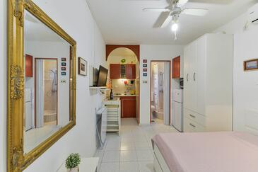 Ferienwohnung bietet Platz für 4 Gäste. Die Betten sind in Schlafzimmern, die es 1 gibt, und in Wohnzimmer, innerhalb einer Gesamtfläche von 42m2, angeordnet. Die Gäste haben eine eigene Terrasse zur Verfügung, auf der sie in warmen Sommernächten genießen können. Für vollen Genuss und Entspannung gibt es einen privaten Grill für Gäste dieser Unterkunft. In der Unterkunftseinheit besteht die Möglichkeit des Mitbringens von Haustieren gegen Aufpreis.