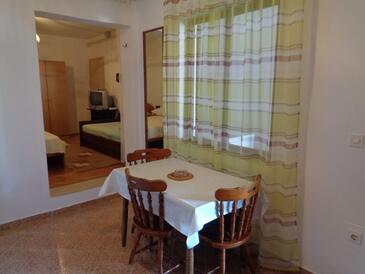 Ferienwohnung bietet Platz für 6 Gäste. Die Betten sind in Schlafzimmern, die es 2 gibt, innerhalb einer Gesamtfläche von 57m2, angeordnet. Die Gäste haben eine eigene Terrasse zur Verfügung, auf der sie in warmen Sommernächten genießen können. Es ist erlaubt, Speisen auf dem Gemeinschafts-Grill vorzubereiten.