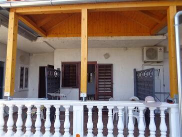 Ferienwohnung bietet Platz für 6 Gäste. Die Betten sind in Schlafzimmern, die es 2 gibt, innerhalb einer Gesamtfläche von 57m2, angeordnet. Die Gäste haben eine eigene Terrasse zur Verfügung, auf der sie in warmen Sommernächten genießen können. Es ist erlaubt, Speisen auf dem Gemeinschafts-Grill vorzubereiten.
