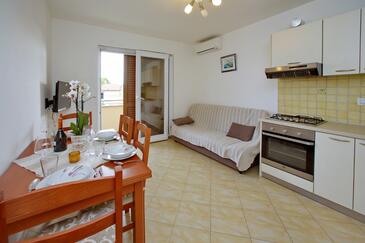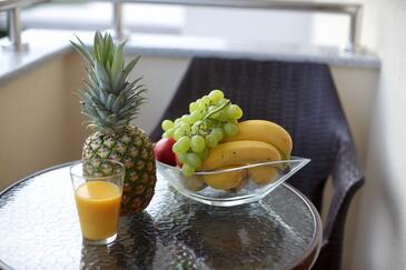 Ferienwohnung bietet Platz für 5 Gäste. Die Betten sind in Schlafzimmern, die es 2 gibt, und in Wohnzimmer, innerhalb einer Gesamtfläche von 63m2, angeordnet. Die Gäste haben einen eigenen Balkon zur Verfügung, auf der sie in warmen Sommernächten genießen können. Es ist erlaubt, Speisen auf dem Gemeinschafts-Grill vorzubereiten.