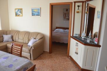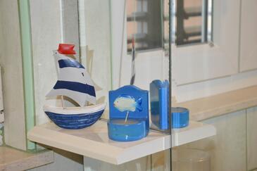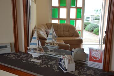 Ferienwohnung bietet Platz für 4 Gäste. Die Betten sind in Schlafzimmern, die es 1 gibt, und in Wohnzimmer, innerhalb einer Gesamtfläche von 37m2, angeordnet. Die Gäste haben eine eigene Terrasse zur Verfügung, auf der sie in warmen Sommernächten genießen können. Das Apartment bietet Meerblick. Es ist erlaubt, Speisen auf dem Gemeinschafts-Grill vorzubereiten.
