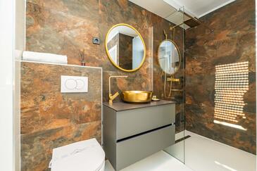 Haus bietet Platz für 9 Gäste. Die Betten sind in Schlafzimmern, die es 4 gibt, und in Wohnzimmer, innerhalb einer Gesamtfläche von 160m2, angeordnet. Die Gäste haben eine eigene Terrasse zur Verfügung, auf der sie in warmen Sommernächten genießen können. Das Haus bietet Meerblick. Während ihres Aufenthalts können sich Gäste im privaten Schwimmbad entspannen. In der Unterkunftseinheit besteht die Möglichkeit des Mitbringens von Haustieren, und die Dienstleistung ist im Preis der Unterkunft enthalten.