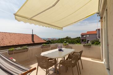 Ferienwohnung bietet Platz für 4 Gäste. Die Betten sind in Schlafzimmern, die es 2 gibt, innerhalb einer Gesamtfläche von 66m2, angeordnet. Die Gäste haben eine eigene Terrasse zur Verfügung, auf der sie in warmen Sommernächten genießen können. Das Apartment bietet Meerblick. Für vollen Genuss und Entspannung gibt es einen privaten Grill für Gäste dieser Unterkunft.