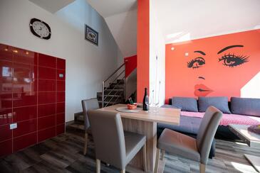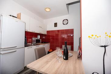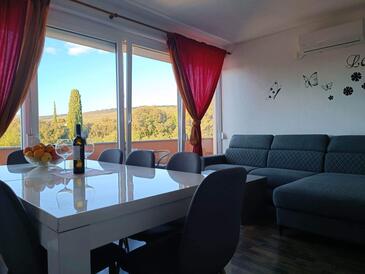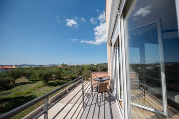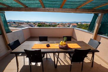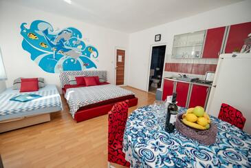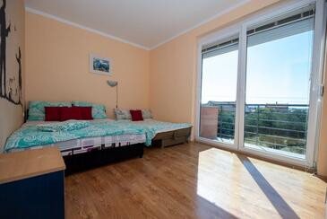 Ferienwohnung bietet Platz für 7 Gäste. Die Betten sind in Schlafzimmern, die es 2 gibt, und in Wohnzimmer, innerhalb einer Gesamtfläche von 61m2, angeordnet. Die Gäste haben eine eigene Terrasse zur Verfügung, auf der sie in warmen Sommernächten genießen können. Das Apartment bietet Meerblick. Es ist erlaubt, Speisen auf dem Gemeinschafts-Grill vorzubereiten. Während ihres Aufenthalts können Gäste das gemeinsam zur Nutzung stehende Schwimmbad benutzen.