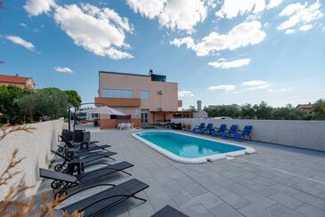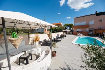 Ferienwohnung bietet Platz für 7 Gäste. Die Betten sind in Schlafzimmern, die es 2 gibt, und in Wohnzimmer, innerhalb einer Gesamtfläche von 61m2, angeordnet. Die Gäste haben eine eigene Terrasse zur Verfügung, auf der sie in warmen Sommernächten genießen können. Das Apartment bietet Meerblick. Es ist erlaubt, Speisen auf dem Gemeinschafts-Grill vorzubereiten. Während ihres Aufenthalts können Gäste das gemeinsam zur Nutzung stehende Schwimmbad benutzen.