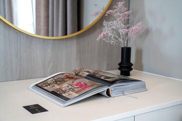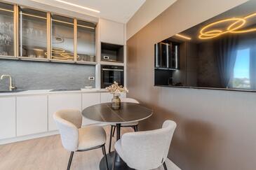 Ferienwohnung bietet Platz für 2 Gäste. Die Betten sind in Schlafzimmern, die es 1 gibt, innerhalb einer Gesamtfläche von 38m2, angeordnet. Die Gäste haben einen eigenen Balkon zur Verfügung, auf der sie in warmen Sommernächten genießen können. Das Apartment bietet Meerblick. Es ist erlaubt, Speisen auf dem Gemeinschafts-Grill vorzubereiten.