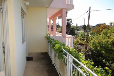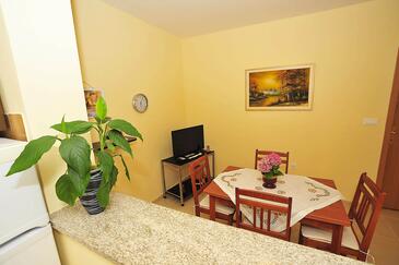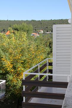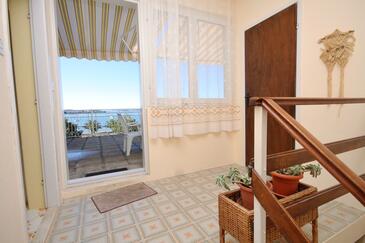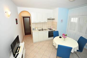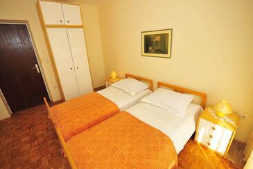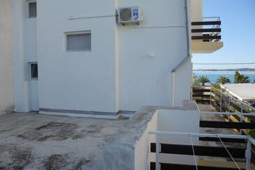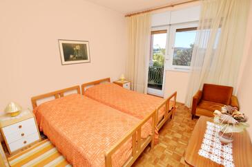 Ferienwohnung bietet Platz für 5 Gäste. Die Betten sind in Schlafzimmern, die es 2 gibt, innerhalb einer Gesamtfläche von 65m2, angeordnet. Die Gäste haben eine eigene Terrasse zur Verfügung, auf der sie in warmen Sommernächten genießen können. Das Apartment bietet Meerblick. Es ist erlaubt, Speisen auf dem Gemeinschafts-Grill vorzubereiten.