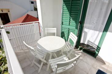Ferienwohnung bietet Platz für 4 Gäste. Die Betten sind in Schlafzimmern, die es 2 gibt, innerhalb einer Gesamtfläche von 57m2, angeordnet. Die Gäste haben eine eigene Terrasse zur Verfügung, auf der sie in warmen Sommernächten genießen können. Es ist erlaubt, Speisen auf dem Gemeinschafts-Grill vorzubereiten.