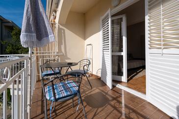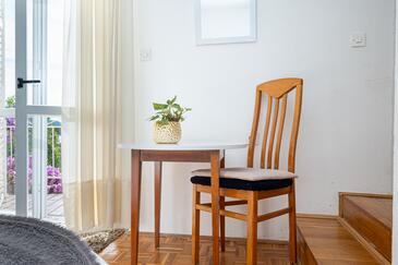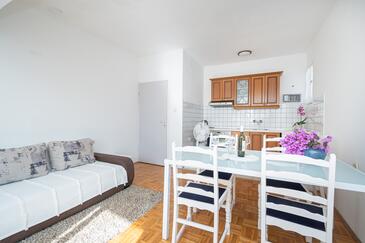 Ferienwohnung bietet Platz für 4 Gäste. Die Betten sind in Schlafzimmern, die es 1 gibt, und in Wohnzimmer, innerhalb einer Gesamtfläche von 46m2, angeordnet. Die Gäste haben eine eigene Terrasse zur Verfügung, auf der sie in warmen Sommernächten genießen können. Das Apartment bietet Meerblick. Es ist erlaubt, Speisen auf dem Gemeinschafts-Grill vorzubereiten.