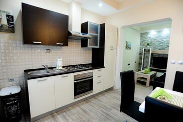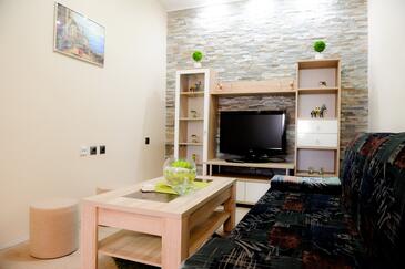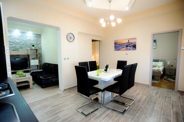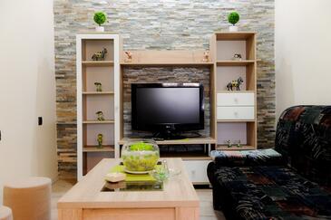 Ferienwohnung bietet Platz für 6 Gäste. Die Betten sind in Schlafzimmern, die es 2 gibt, und in Wohnzimmer, innerhalb einer Gesamtfläche von 51m2, angeordnet. Die Gäste haben eine eigene Terrasse zur Verfügung, auf der sie in warmen Sommernächten genießen können. Es ist erlaubt, Speisen auf dem Gemeinschafts-Grill vorzubereiten.