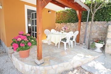 Ferienwohnung bietet Platz für 5 Gäste. Die Betten sind in Schlafzimmern, die es 2 gibt, und in Wohnzimmer, innerhalb einer Gesamtfläche von 39m2, angeordnet. Die Gäste haben eine eigene Terrasse zur Verfügung, auf der sie in warmen Sommernächten genießen können. Das Apartment bietet Meerblick. Es ist erlaubt, Speisen auf dem Gemeinschafts-Grill vorzubereiten.