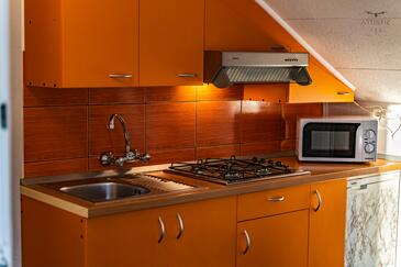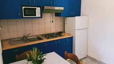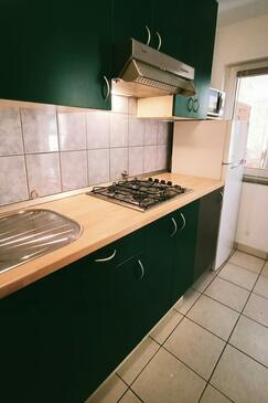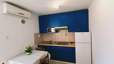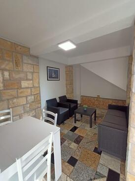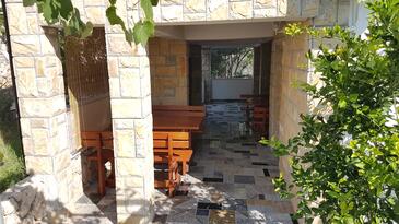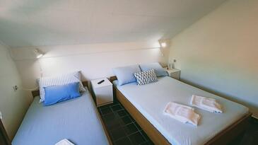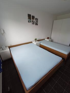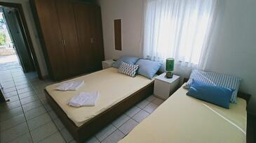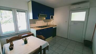 Ferienwohnung bietet Platz für 5 Gäste. Die Betten sind in Schlafzimmern, die es 2 gibt, innerhalb einer Gesamtfläche von 36m2, angeordnet. Die Gäste haben eine eigene Terrasse zur Verfügung, auf der sie in warmen Sommernächten genießen können. Es ist erlaubt, Speisen auf dem Gemeinschafts-Grill vorzubereiten.