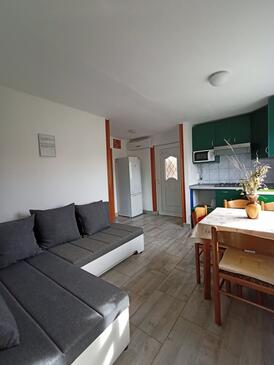 Ferienwohnung bietet Platz für 5 Gäste. Die Betten sind in Schlafzimmern, die es 2 gibt, innerhalb einer Gesamtfläche von 36m2, angeordnet. Die Gäste haben eine eigene Terrasse zur Verfügung, auf der sie in warmen Sommernächten genießen können. Es ist erlaubt, Speisen auf dem Gemeinschafts-Grill vorzubereiten.