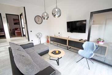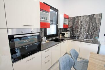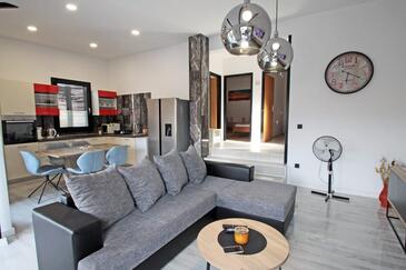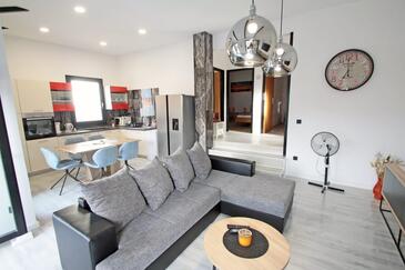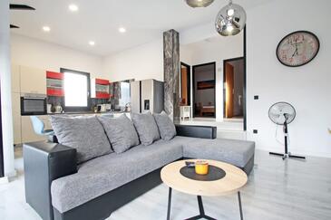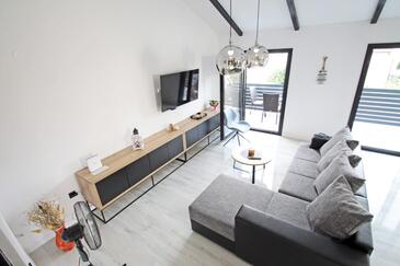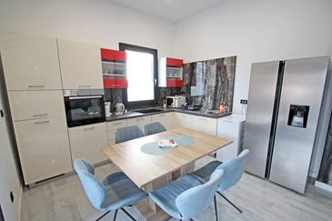 Haus bietet Platz für 6 Gäste. Die Betten sind in Schlafzimmern, die es 2 gibt, und in Wohnzimmer, innerhalb einer Gesamtfläche von 95m2, angeordnet. Die Gäste haben eine eigene Terrasse zur Verfügung, auf der sie in warmen Sommernächten genießen können. Das Haus bietet Meerblick. Für vollen Genuss und Entspannung gibt es einen privaten Grill für Gäste dieser Unterkunft. In der Unterkunftseinheit besteht die Möglichkeit des Mitbringens von Haustieren, und die Dienstleistung ist im Preis der Unterkunft enthalten.