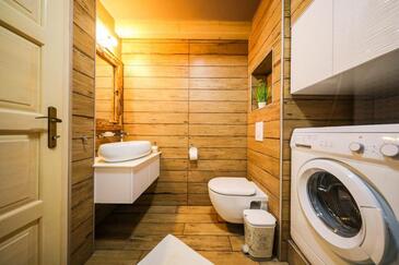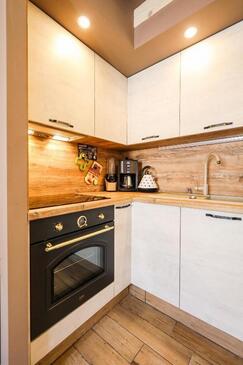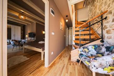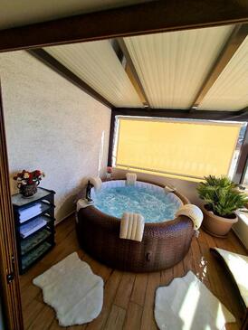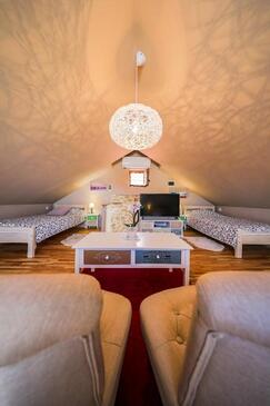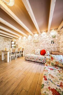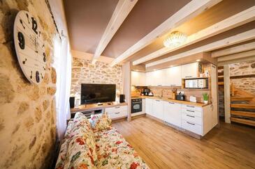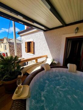 Haus bietet Platz für 8 Gäste. Die Betten sind in Schlafzimmern, die es 3 gibt, innerhalb einer Gesamtfläche von 78m2, angeordnet. Die Gäste haben einen eigenen Balkon zur Verfügung, auf der sie in warmen Sommernächten genießen können. Das Haus bietet Meerblick. Für vollen Genuss und Entspannung gibt es einen privaten Grill für Gäste dieser Unterkunft. In der Unterkunftseinheit besteht die Möglichkeit des Mitbringens von Haustieren, und die Dienstleistung ist im Preis der Unterkunft enthalten.