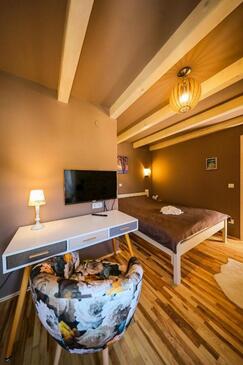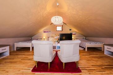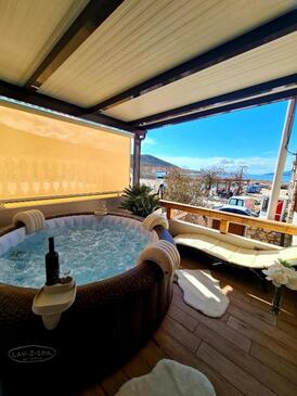 Haus bietet Platz für 8 Gäste. Die Betten sind in Schlafzimmern, die es 3 gibt, innerhalb einer Gesamtfläche von 78m2, angeordnet. Die Gäste haben einen eigenen Balkon zur Verfügung, auf der sie in warmen Sommernächten genießen können. Das Haus bietet Meerblick. Für vollen Genuss und Entspannung gibt es einen privaten Grill für Gäste dieser Unterkunft. In der Unterkunftseinheit besteht die Möglichkeit des Mitbringens von Haustieren, und die Dienstleistung ist im Preis der Unterkunft enthalten.