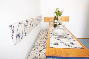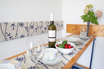 Ferienwohnung bietet Platz für 4 Gäste. Die Betten sind in Schlafzimmern, die es 2 gibt, innerhalb einer Gesamtfläche von 29m2, angeordnet. Die Gäste haben einen eigenen Balkon zur Verfügung, auf der sie in warmen Sommernächten genießen können. Das Apartment bietet Meerblick. Es ist erlaubt, Speisen auf dem Gemeinschafts-Grill vorzubereiten.