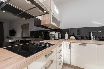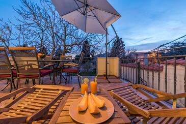 Haus bietet Platz für 8 Gäste. Die Betten sind in Schlafzimmern, die es 3 gibt, und in Wohnzimmer, innerhalb einer Gesamtfläche von 100m2, angeordnet. Die Gäste haben eine eigene Terrasse zur Verfügung, auf der sie in warmen Sommernächten genießen können. Für vollen Genuss und Entspannung gibt es einen privaten Grill für Gäste dieser Unterkunft. In der gebuchten Unterkunftseinheit zahlt man am Ort ein Depositum ( der Preis ist an der Internetseite angeführt ).