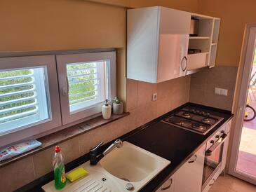 Ferienwohnung bietet Platz für 6 Gäste. Die Betten sind in Schlafzimmern, die es 3 gibt, innerhalb einer Gesamtfläche von 81m2, angeordnet. Die Gäste haben eine eigene Terrasse zur Verfügung, auf der sie in warmen Sommernächten genießen können. Das Apartment bietet Meerblick. Es ist erlaubt, Speisen auf dem Gemeinschafts-Grill vorzubereiten.