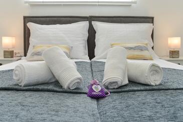 Haus bietet Platz für 8 Gäste. Die Betten sind in Schlafzimmern, die es 4 gibt, innerhalb einer Gesamtfläche von 130m2, angeordnet. Die Gäste haben eine eigene Terrasse zur Verfügung, auf der sie in warmen Sommernächten genießen können. Für vollen Genuss und Entspannung gibt es einen privaten Grill für Gäste dieser Unterkunft. Während ihres Aufenthalts können sich Gäste im privaten Schwimmbad entspannen. In der gebuchten Unterkunftseinheit zahlt man am Ort ein Depositum ( der Preis ist an der Internetseite angeführt ).