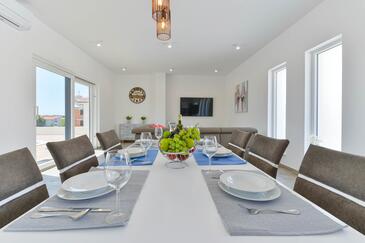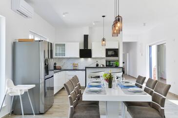 Haus bietet Platz für 8 Gäste. Die Betten sind in Schlafzimmern, die es 4 gibt, innerhalb einer Gesamtfläche von 130m2, angeordnet. Die Gäste haben eine eigene Terrasse zur Verfügung, auf der sie in warmen Sommernächten genießen können. Für vollen Genuss und Entspannung gibt es einen privaten Grill für Gäste dieser Unterkunft. Während ihres Aufenthalts können Gäste das gemeinsam zur Nutzung stehende Schwimmbad benutzen.