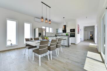 Haus bietet Platz für 8 Gäste. Die Betten sind in Schlafzimmern, die es 4 gibt, innerhalb einer Gesamtfläche von 130m2, angeordnet. Die Gäste haben eine eigene Terrasse zur Verfügung, auf der sie in warmen Sommernächten genießen können. Für vollen Genuss und Entspannung gibt es einen privaten Grill für Gäste dieser Unterkunft. Während ihres Aufenthalts können Gäste das gemeinsam zur Nutzung stehende Schwimmbad benutzen.