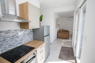 Ferienwohnung bietet Platz für 6 Gäste. Die Betten sind in Schlafzimmern, die es 2 gibt, und in Wohnzimmer, innerhalb einer Gesamtfläche von 74m2, angeordnet. Die Gäste haben eine eigene Terrasse zur Verfügung, auf der sie in warmen Sommernächten genießen können. Es ist erlaubt, Speisen auf dem Gemeinschafts-Grill vorzubereiten. Während ihres Aufenthalts können Gäste das gemeinsam zur Nutzung stehende Schwimmbad benutzen.