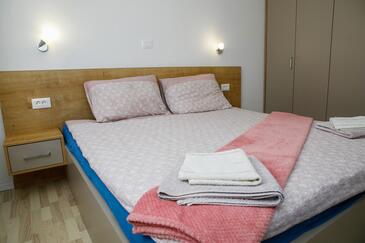 Ferienwohnung bietet Platz für 6 Gäste. Die Betten sind in Schlafzimmern, die es 2 gibt, und in Wohnzimmer, innerhalb einer Gesamtfläche von 74m2, angeordnet. Die Gäste haben eine eigene Terrasse zur Verfügung, auf der sie in warmen Sommernächten genießen können. Es ist erlaubt, Speisen auf dem Gemeinschafts-Grill vorzubereiten. Während ihres Aufenthalts können Gäste das gemeinsam zur Nutzung stehende Schwimmbad benutzen.