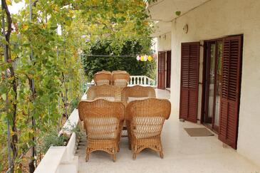 Ferienwohnung bietet Platz für 8 Gäste. Die Betten sind in Schlafzimmern, die es 4 gibt, innerhalb einer Gesamtfläche von 120m2, angeordnet. Die Gäste haben eine eigene Terrasse zur Verfügung, auf der sie in warmen Sommernächten genießen können. Das Apartment bietet Meerblick. Es ist erlaubt, Speisen auf dem Gemeinschafts-Grill vorzubereiten. In der Unterkunftseinheit besteht die Möglichkeit des Mitbringens von Haustieren, und die Dienstleistung ist im Preis der Unterkunft enthalten.