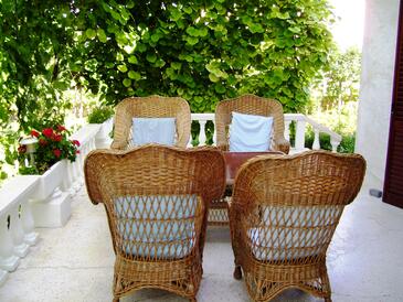 Ferienwohnung bietet Platz für 8 Gäste. Die Betten sind in Schlafzimmern, die es 4 gibt, innerhalb einer Gesamtfläche von 120m2, angeordnet. Die Gäste haben eine eigene Terrasse zur Verfügung, auf der sie in warmen Sommernächten genießen können. Das Apartment bietet Meerblick. Es ist erlaubt, Speisen auf dem Gemeinschafts-Grill vorzubereiten. In der Unterkunftseinheit besteht die Möglichkeit des Mitbringens von Haustieren, und die Dienstleistung ist im Preis der Unterkunft enthalten.