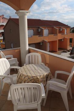 Ferienwohnung bietet Platz für 5 Gäste. Die Betten sind in Schlafzimmern, die es 2 gibt, und in Wohnzimmer, innerhalb einer Gesamtfläche von 45m2, angeordnet. Die Gäste haben eine eigene Terrasse zur Verfügung, auf der sie in warmen Sommernächten genießen können. Das Apartment bietet Meerblick. Es ist erlaubt, Speisen auf dem Gemeinschafts-Grill vorzubereiten.