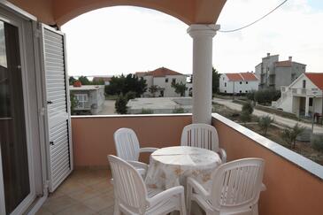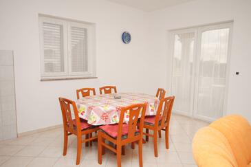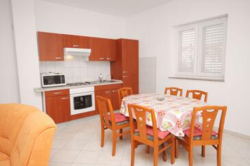 Ferienwohnung bietet Platz für 5 Gäste. Die Betten sind in Schlafzimmern, die es 2 gibt, und in Wohnzimmer, innerhalb einer Gesamtfläche von 45m2, angeordnet. Die Gäste haben eine eigene Terrasse zur Verfügung, auf der sie in warmen Sommernächten genießen können. Das Apartment bietet Meerblick. Es ist erlaubt, Speisen auf dem Gemeinschafts-Grill vorzubereiten.