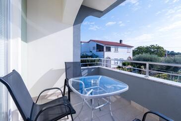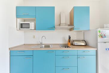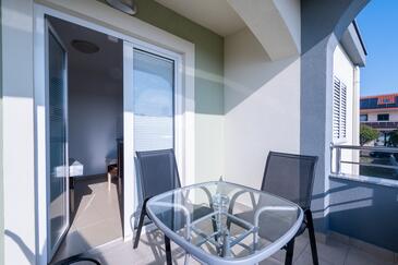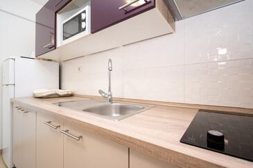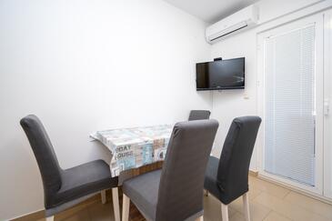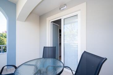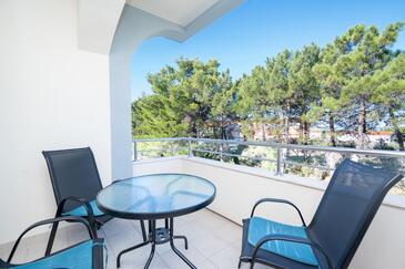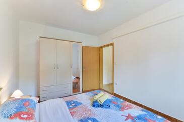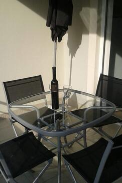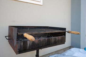 Ferienwohnung bietet Platz für 4 Gäste. Die Betten sind in Schlafzimmern, die es 2 gibt, innerhalb einer Gesamtfläche von 46m2, angeordnet. Die Gäste haben eine eigene Terrasse zur Verfügung, auf der sie in warmen Sommernächten genießen können. Es ist erlaubt, Speisen auf dem Gemeinschafts-Grill vorzubereiten.