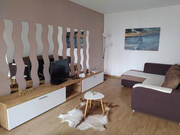 Ferienwohnung bietet Platz für 4 Gäste. Die Betten sind in Schlafzimmern, die es 2 gibt, innerhalb einer Gesamtfläche von 66m2, angeordnet. Die Gäste haben eine eigene Terrasse zur Verfügung, auf der sie in warmen Sommernächten genießen können. Das Apartment bietet Meerblick. Es ist erlaubt, Speisen auf dem Gemeinschafts-Grill vorzubereiten.