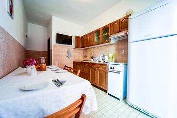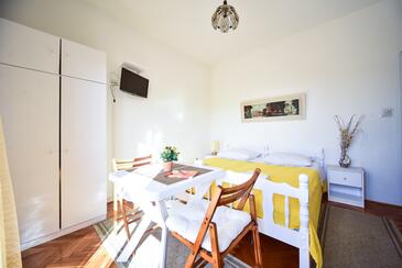 Ferienwohnung bietet Platz für 6 Gäste. Die Betten sind in Schlafzimmern, die es 3 gibt, innerhalb einer Gesamtfläche von 68m2, angeordnet. Die Gäste haben eine eigene Terrasse zur Verfügung, auf der sie in warmen Sommernächten genießen können. Es ist erlaubt, Speisen auf dem Gemeinschafts-Grill vorzubereiten. In der gebuchten Unterkunftseinheit zahlt man am Ort ein Depositum ( der Preis ist an der Internetseite angeführt ).