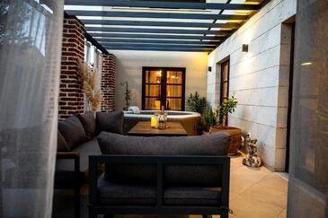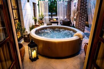 Ferienwohnung bietet Platz für 8 Gäste. Die Betten sind in Schlafzimmern, die es 4 gibt, innerhalb einer Gesamtfläche von 154m2, angeordnet. Die Gäste haben eine eigene Terrasse zur Verfügung, auf der sie in warmen Sommernächten genießen können. Für vollen Genuss und Entspannung gibt es einen privaten Grill für Gäste dieser Unterkunft. In der Unterkunftseinheit besteht die Möglichkeit des Mitbringens von Haustieren, und die Dienstleistung ist im Preis der Unterkunft enthalten.