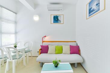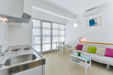 Ferienwohnung bietet Platz für 5 Gäste. Die Betten sind in Schlafzimmern, die es 1 gibt, und in Wohnzimmer, innerhalb einer Gesamtfläche von 41m2, angeordnet. Die Gäste haben einen eigenen Balkon zur Verfügung, auf der sie in warmen Sommernächten genießen können. Es ist erlaubt, Speisen auf dem Gemeinschafts-Grill vorzubereiten.