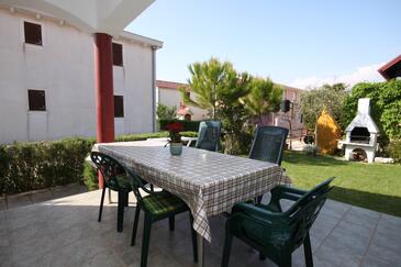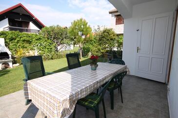 Ferienwohnung bietet Platz für 5 Gäste. Die Betten sind in Schlafzimmern, die es 2 gibt, und in Esszimmer, innerhalb einer Gesamtfläche von 38m2, angeordnet. Die Gäste haben eine eigene Terrasse zur Verfügung, auf der sie in warmen Sommernächten genießen können. Es ist erlaubt, Speisen auf dem Gemeinschafts-Grill vorzubereiten.