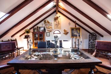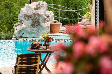 Haus bietet Platz für 12 Gäste. Die Betten sind in Schlafzimmern, die es 6 gibt, innerhalb einer Gesamtfläche von 191m2, angeordnet. Die Gäste haben eine eigene Terrasse zur Verfügung, auf der sie in warmen Sommernächten genießen können. Für vollen Genuss und Entspannung gibt es einen privaten Grill für Gäste dieser Unterkunft. Während ihres Aufenthalts können sich Gäste im privaten Schwimmbad entspannen. Unterkunftseinheit hat Räume, die von dem Rest der Einheit abgetrennt werden. In der gebuchten Unterkunftseinheit zahlt man am Ort ein Depositum ( der Preis ist an der Internetseite angeführt ).