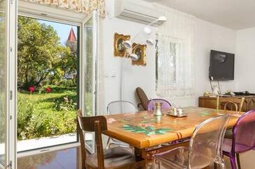 Haus bietet Platz für 8 Gäste. Die Betten sind in Schlafzimmern, die es 4 gibt, innerhalb einer Gesamtfläche von 115m2, angeordnet. Die Gäste haben eine eigene Terrasse zur Verfügung, auf der sie in warmen Sommernächten genießen können. Für vollen Genuss und Entspannung gibt es einen privaten Grill für Gäste dieser Unterkunft. Während ihres Aufenthalts können sich Gäste im privaten Schwimmbad entspannen. In der Unterkunftseinheit besteht die Möglichkeit des Mitbringens von Haustieren, und die Dienstleistung ist im Preis der Unterkunft enthalten.