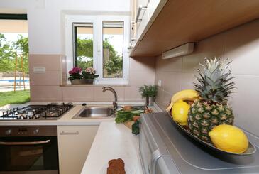 Haus bietet Platz für 6 Gäste. Die Betten sind in Schlafzimmern, die es 2 gibt, und in Wohnzimmer, innerhalb einer Gesamtfläche von 79m2, angeordnet. Die Gäste haben eine eigene Terrasse zur Verfügung, auf der sie in warmen Sommernächten genießen können. Für vollen Genuss und Entspannung gibt es einen privaten Grill für Gäste dieser Unterkunft. Während ihres Aufenthalts können sich Gäste im privaten Schwimmbad entspannen. In der Unterkunftseinheit besteht die Möglichkeit des Mitbringens von Haustieren, und die Dienstleistung ist im Preis der Unterkunft enthalten.
