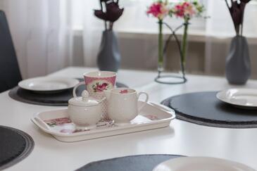 Haus bietet Platz für 17 Gäste. Die Betten sind in Schlafzimmern, die es 8 gibt, innerhalb einer Gesamtfläche von 196m2, angeordnet. Die Gäste haben eine eigene Terrasse zur Verfügung, auf der sie in warmen Sommernächten genießen können. Für vollen Genuss und Entspannung gibt es einen privaten Grill für Gäste dieser Unterkunft. Während ihres Aufenthalts können sich Gäste im privaten Schwimmbad entspannen. In der gebuchten Unterkunftseinheit zahlt man am Ort ein Depositum ( der Preis ist an der Internetseite angeführt ).