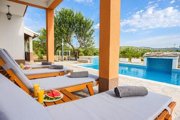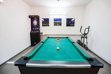 Haus bietet Platz für 7 Gäste. Die Betten sind in Schlafzimmern, die es 3 gibt, und in Wohnzimmer, innerhalb einer Gesamtfläche von 120m2, angeordnet. Die Gäste haben eine eigene Terrasse zur Verfügung, auf der sie in warmen Sommernächten genießen können. Für vollen Genuss und Entspannung gibt es einen privaten Grill für Gäste dieser Unterkunft. Während ihres Aufenthalts können sich Gäste im privaten Schwimmbad entspannen.
