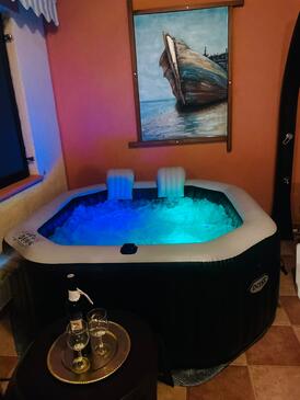 Haus bietet Platz für 8 Gäste. Die Betten sind in Schlafzimmern, die es 3 gibt, und in Wohnzimmer, innerhalb einer Gesamtfläche von 104m2, angeordnet. Die Gäste haben eine eigene Terrasse zur Verfügung, auf der sie in warmen Sommernächten genießen können. Es ist erlaubt, Speisen auf dem Gemeinschafts-Grill vorzubereiten. Während ihres Aufenthalts können sich Gäste im privaten Schwimmbad entspannen.
