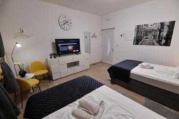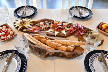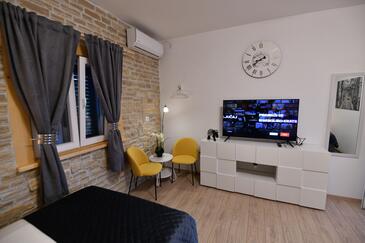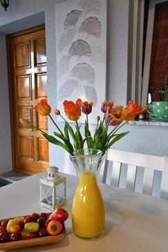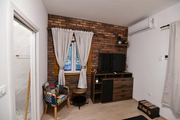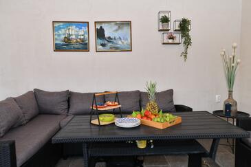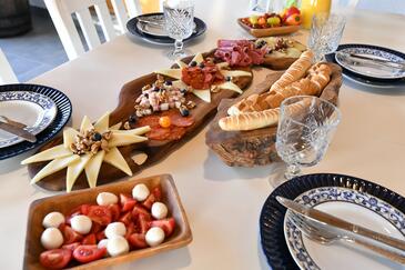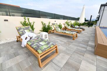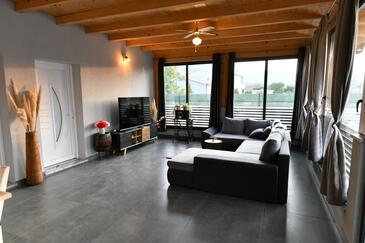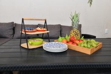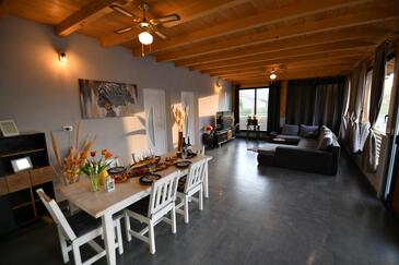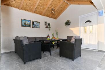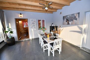 Haus bietet Platz für 6 Gäste. Die Betten sind in Schlafzimmern, die es 2 gibt, und in Wohnzimmer, innerhalb einer Gesamtfläche von 140m2, angeordnet. Die Gäste haben eine eigene Terrasse zur Verfügung, auf der sie in warmen Sommernächten genießen können. Für vollen Genuss und Entspannung gibt es einen privaten Grill für Gäste dieser Unterkunft. Während ihres Aufenthalts können Gäste das gemeinsam zur Nutzung stehende Schwimmbad benutzen.
