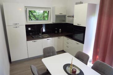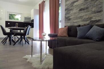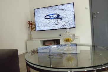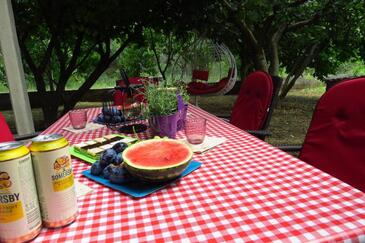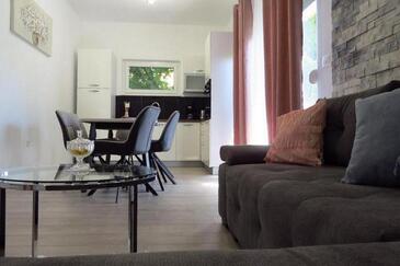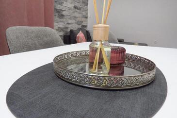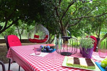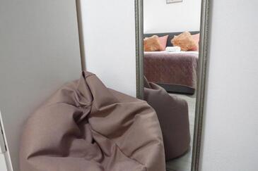 Ferienwohnung bietet Platz für 6 Gäste. Die Betten sind in Schlafzimmern, die es 3 gibt, innerhalb einer Gesamtfläche von 100m2, angeordnet. Die Gäste haben eine eigene Terrasse zur Verfügung, auf der sie in warmen Sommernächten genießen können. Es ist erlaubt, Speisen auf dem Gemeinschafts-Grill vorzubereiten.