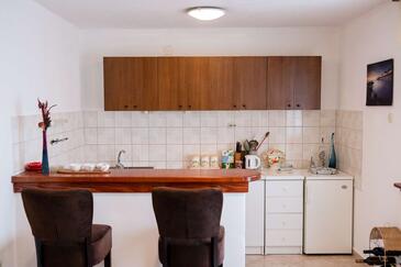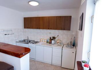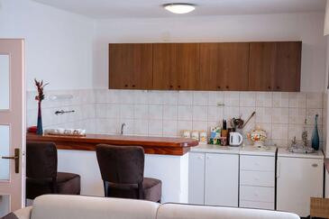 Ferienwohnung bietet Platz für 5 Gäste. Die Betten sind in Schlafzimmern, die es 2 gibt, und in Esszimmer, innerhalb einer Gesamtfläche von 65m2, angeordnet. Die Gäste haben eine eigene Terrasse zur Verfügung, auf der sie in warmen Sommernächten genießen können. Es ist erlaubt, Speisen auf dem Gemeinschafts-Grill vorzubereiten. In der Unterkunftseinheit besteht die Möglichkeit des Mitbringens von Haustieren, und die Dienstleistung ist im Preis der Unterkunft enthalten.