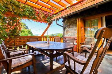 Haus bietet Platz für 7 Gäste. Die Betten sind in Schlafzimmern, die es 3 gibt, innerhalb einer Gesamtfläche von 97m2, angeordnet. Die Gäste haben eine eigene Terrasse zur Verfügung, auf der sie in warmen Sommernächten genießen können. Für vollen Genuss und Entspannung gibt es einen privaten Grill für Gäste dieser Unterkunft. Während ihres Aufenthalts können sich Gäste im privaten Schwimmbad entspannen. In der Unterkunftseinheit besteht die Möglichkeit des Mitbringens von Haustieren, und die Dienstleistung ist im Preis der Unterkunft enthalten.
