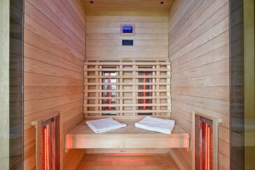 Haus bietet Platz für 5 Gäste. Die Betten sind in Schlafzimmern, die es 2 gibt, innerhalb einer Gesamtfläche von 94m2, angeordnet. Die Gäste haben eine eigene Terrasse zur Verfügung, auf der sie in warmen Sommernächten genießen können. Für vollen Genuss und Entspannung gibt es einen privaten Grill für Gäste dieser Unterkunft. Während ihres Aufenthalts können sich Gäste im privaten Schwimmbad entspannen.