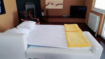 Ferienwohnung bietet Platz für 4 Gäste. Die Betten sind in Schlafzimmern, die es 1 gibt, und in Wohnzimmer, innerhalb einer Gesamtfläche von 80m2, angeordnet. Die Gäste haben einen eigenen Balkon zur Verfügung, auf der sie in warmen Sommernächten genießen können.